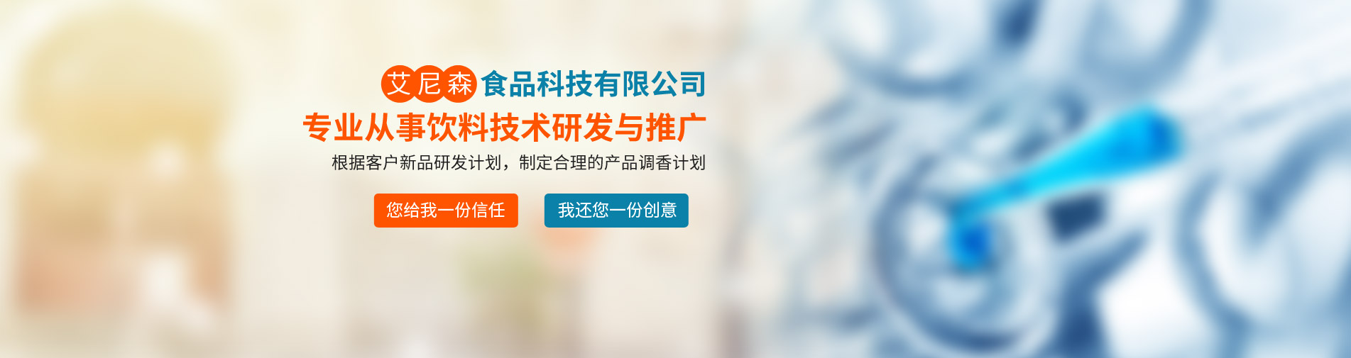 廊坊市艾尼森食品科技公司是一家專業從事飲料技術研發與推廣的公司,公司業務主要包括食品飲料技術咨詢與服務、產品定位與現有產品品質改進、新產品技術工藝研發等。公司坐落于京津冀核心地帶--廊坊市,位置得天獨厚,現與京津多家研究所形成戰略合作關系,為多家上市公司及知名企業提供技術支持與原材料供應。